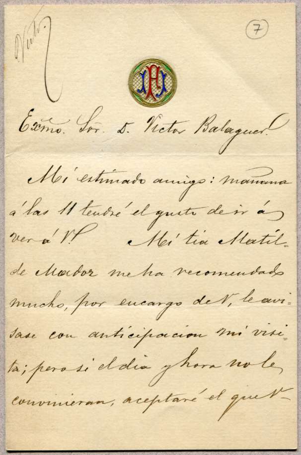 TextPublisher: [s.l.] / 01/1872Addressee: Balaguer, Víctor, 1824-1901, destinatariSubject(s): Madoz, Matilde de | varis- entrevistaOnline resources: