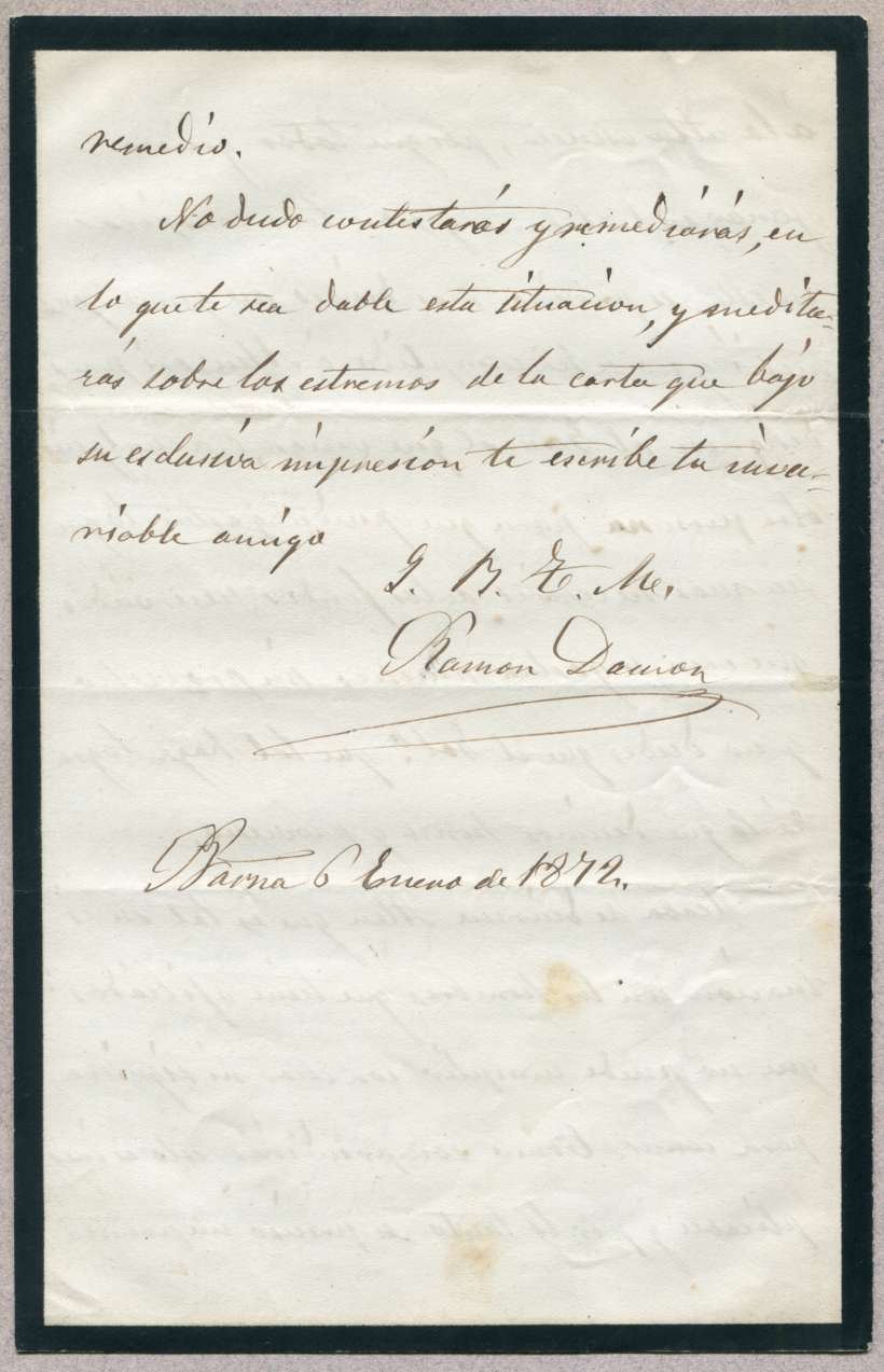 TextPublisher: Barcelona / 06/01/1872Addressee: Balaguer, Víctor, 1824-1901, destinatariSubject(s): Aleu | eleccions generals- estratègiaOnline resources:
