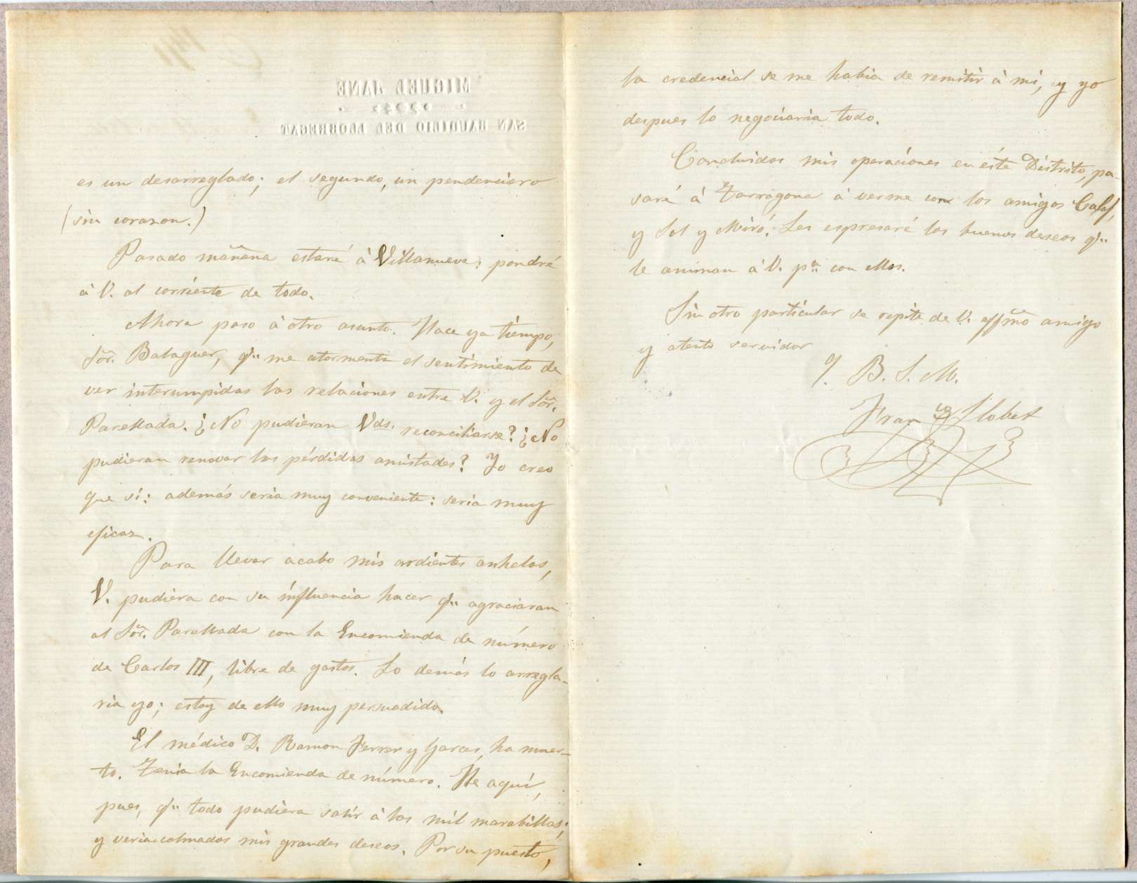 | Enllaç Summary: Es dedueix que Balaguer és partidari de Madorell i no de Fontanals. Li anuncia que hi intervindrán perquè surti tot com desitgen. També li demana que faci les paus amb Parellada de Vilanova.Summary: Es dedueix que Balaguer és partidari de Madorell i no de Fontanals. Li anuncia que hi intervindrán perquè surti tot com desitgen. També li demana que faci les paus amb Parellada de Vilanova.
