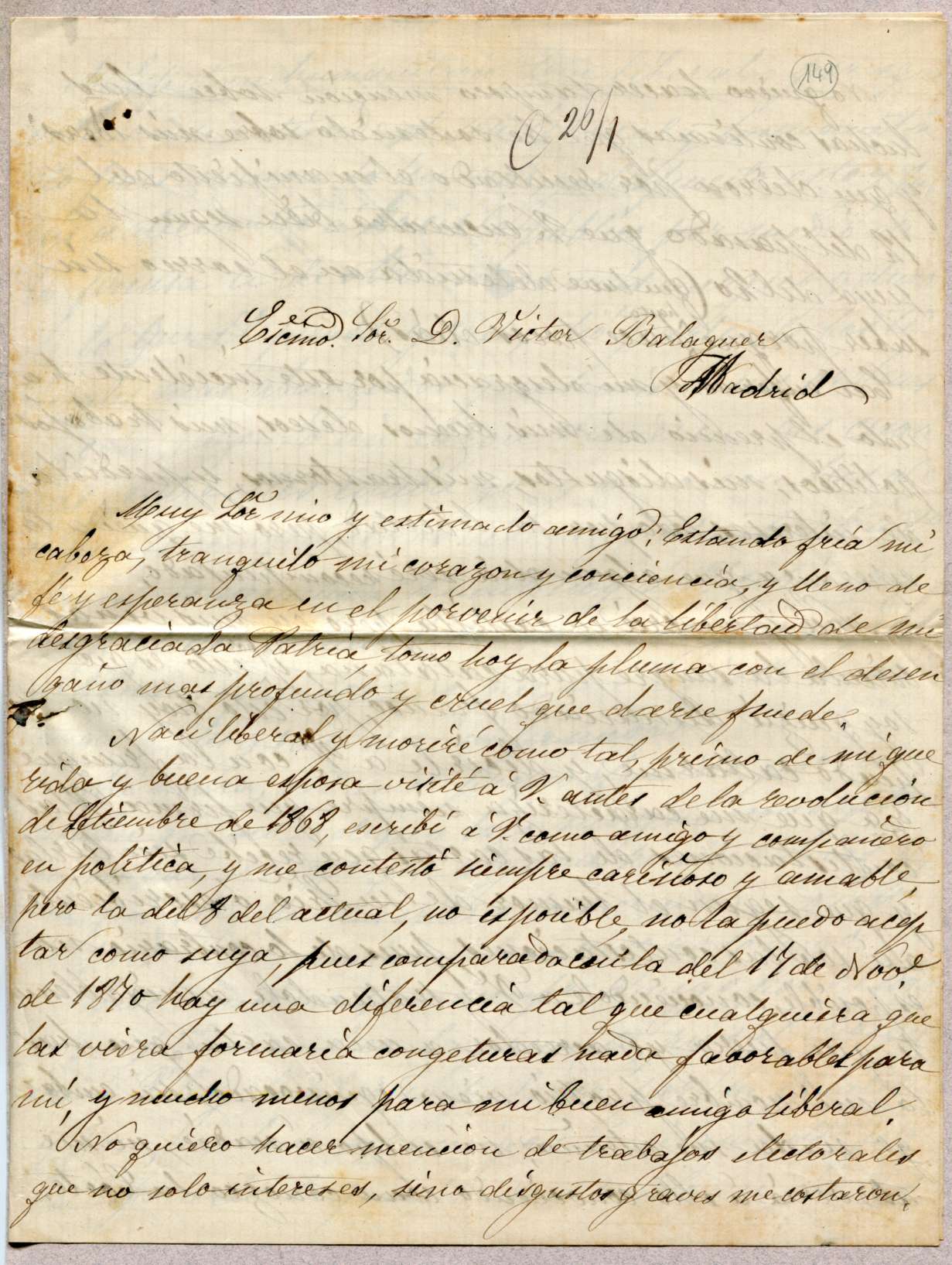 Summary: Carta molt dura contra Balaguer perquè consisteix que bons lliberals com ell siguin cessats pel govern sense cap motiu.Summary: Carta molt dura contra Balaguer perquè consisteix que bons lliberals com ell siguin cessats pel govern sense cap motiu.