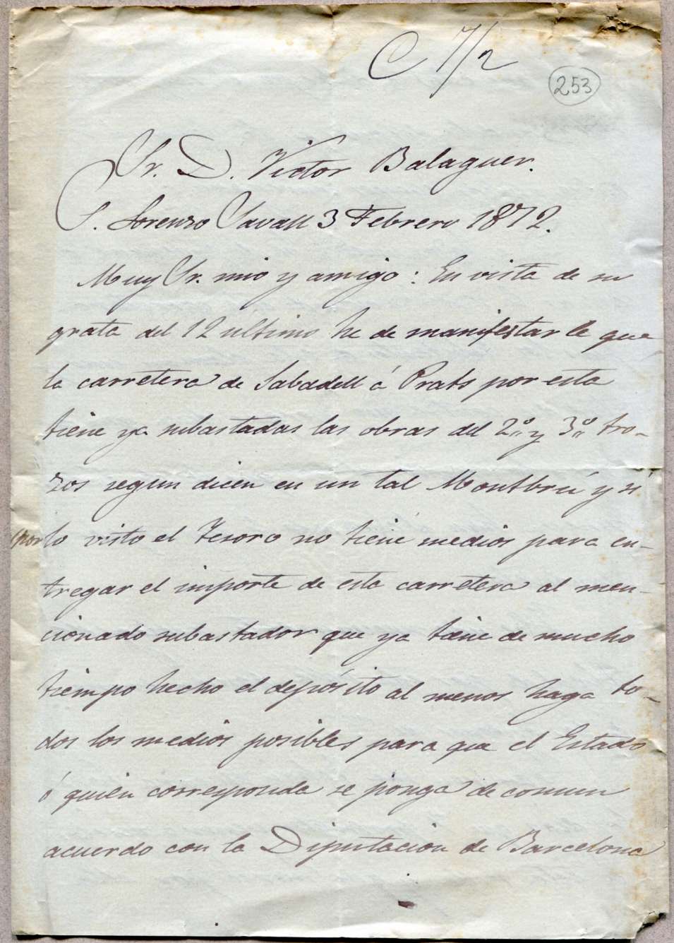 [Carta de l'epistolari de Víctor Balaguer]