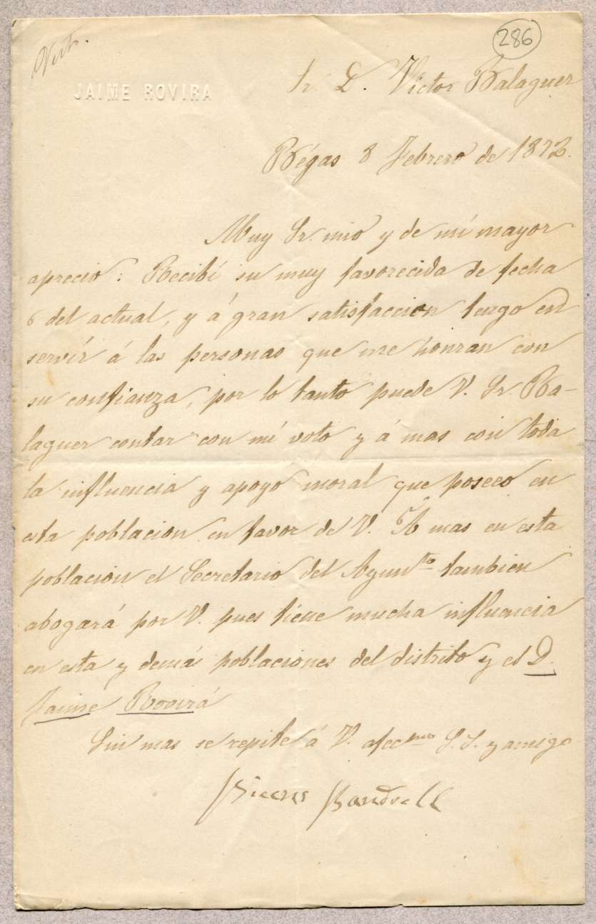 [Carta de l'epistolari de Víctor Balaguer]