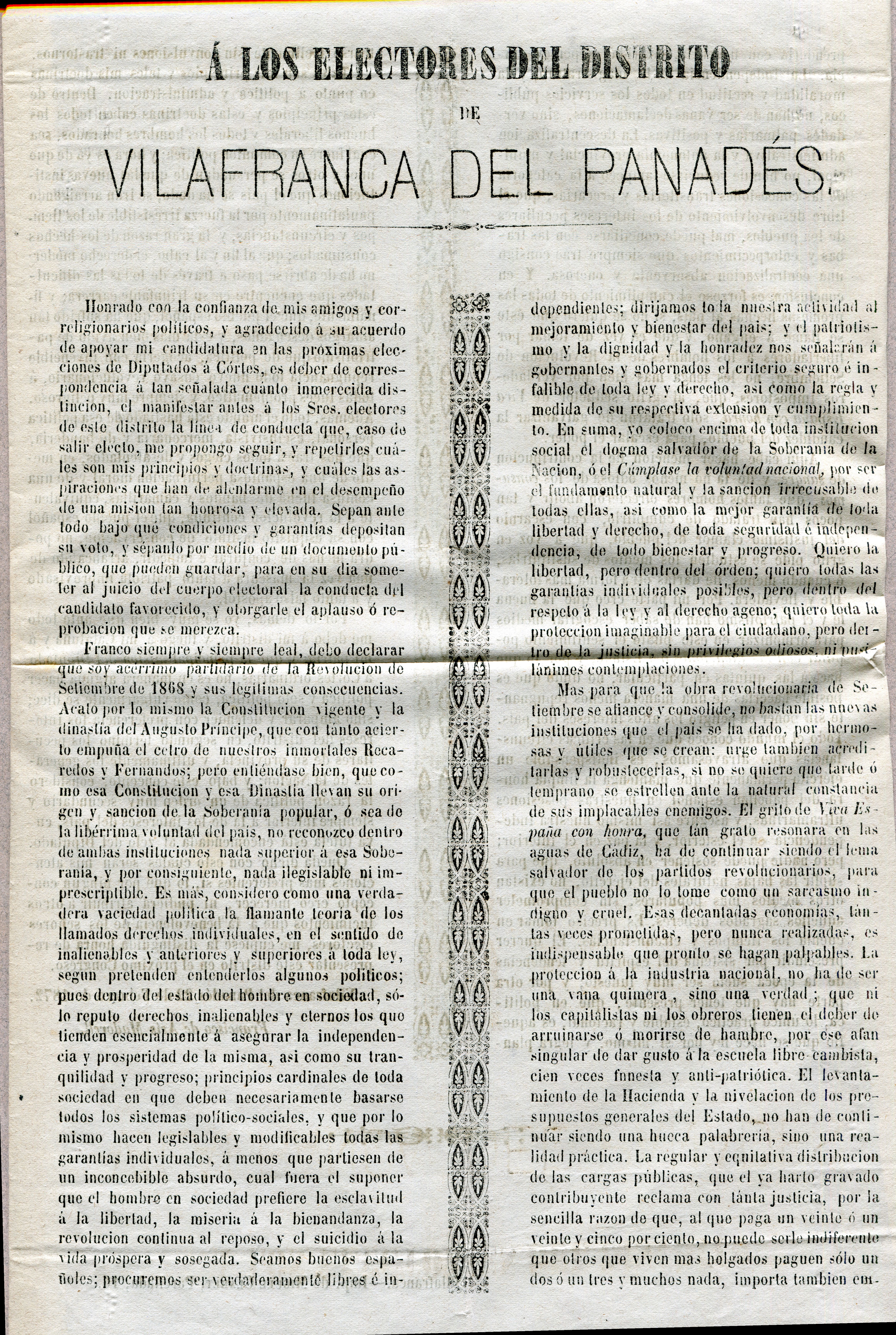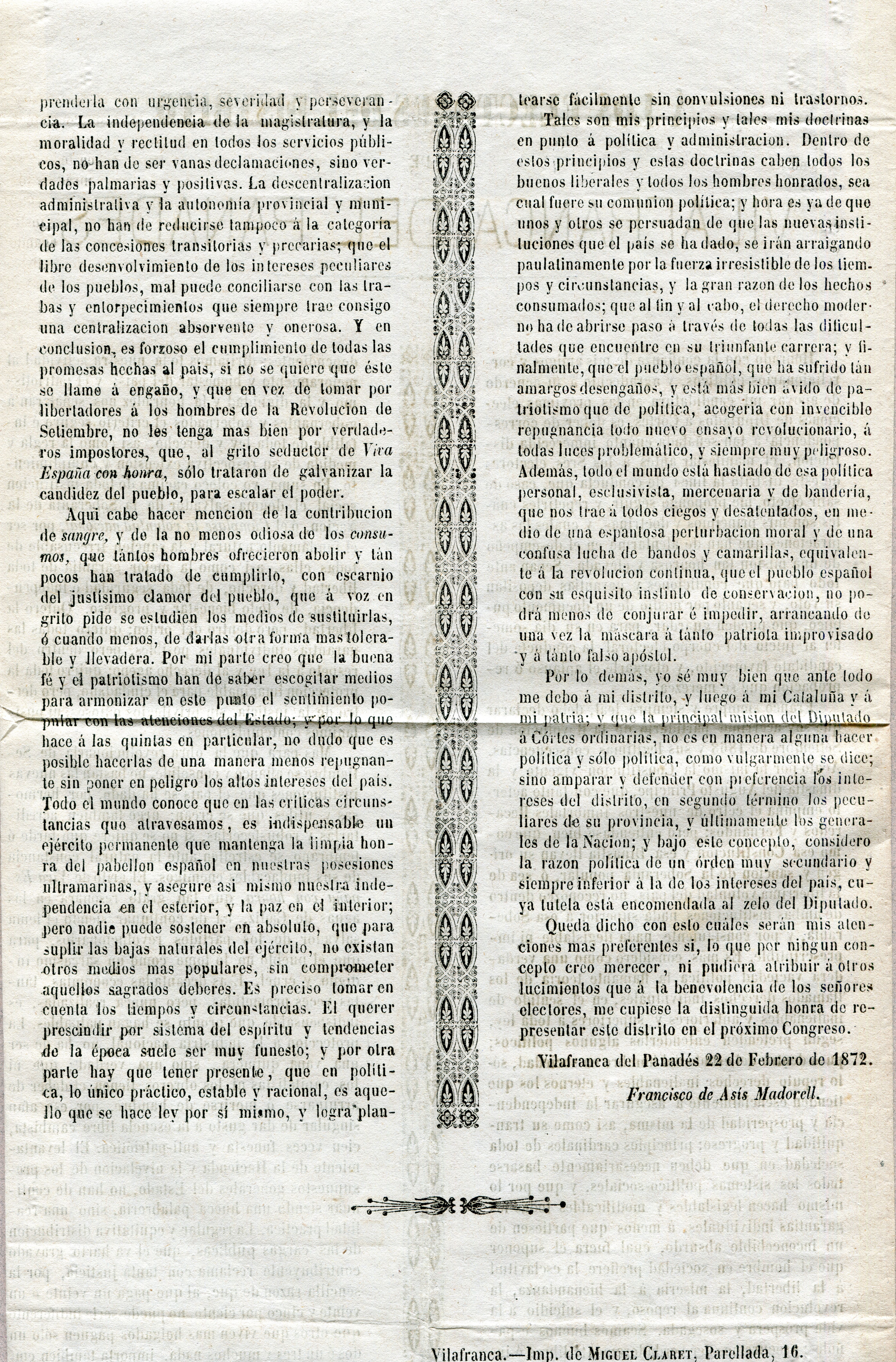 TextPublisher: Vilafranca del Penedès / 23/02/1872Addressee: Balaguer, Víctor, 1824-1901, destinatariSubject(s): Fontanals, Antonio Ma | Madorell, Francisco de A | Manant | Borràs Magriñà, Josep | Tarrida i Ferratges, Gaietà | eleccions generals- candidatures (VB)Online resources: