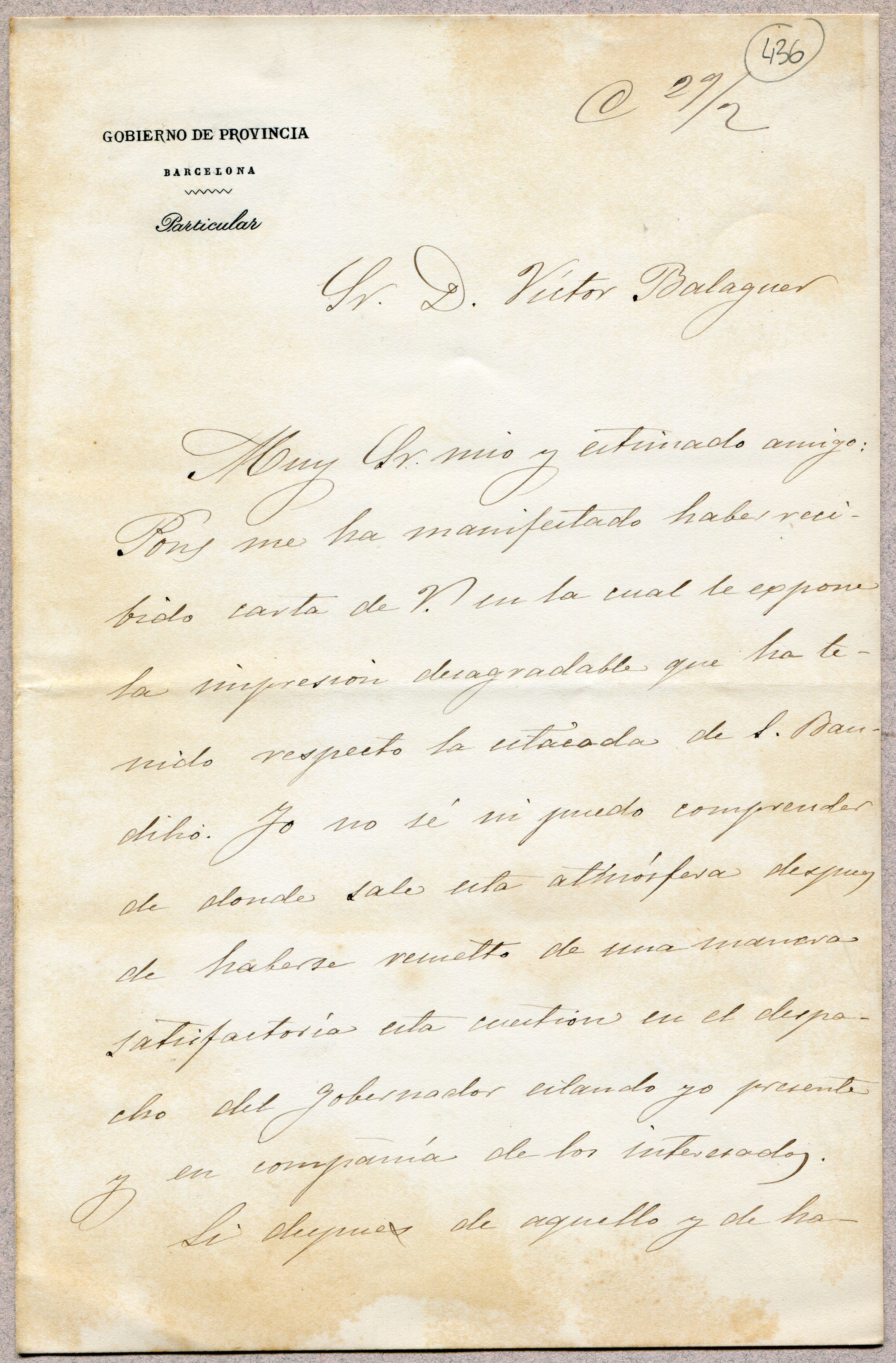 [Carta de l'epistolari de Víctor Balaguer]