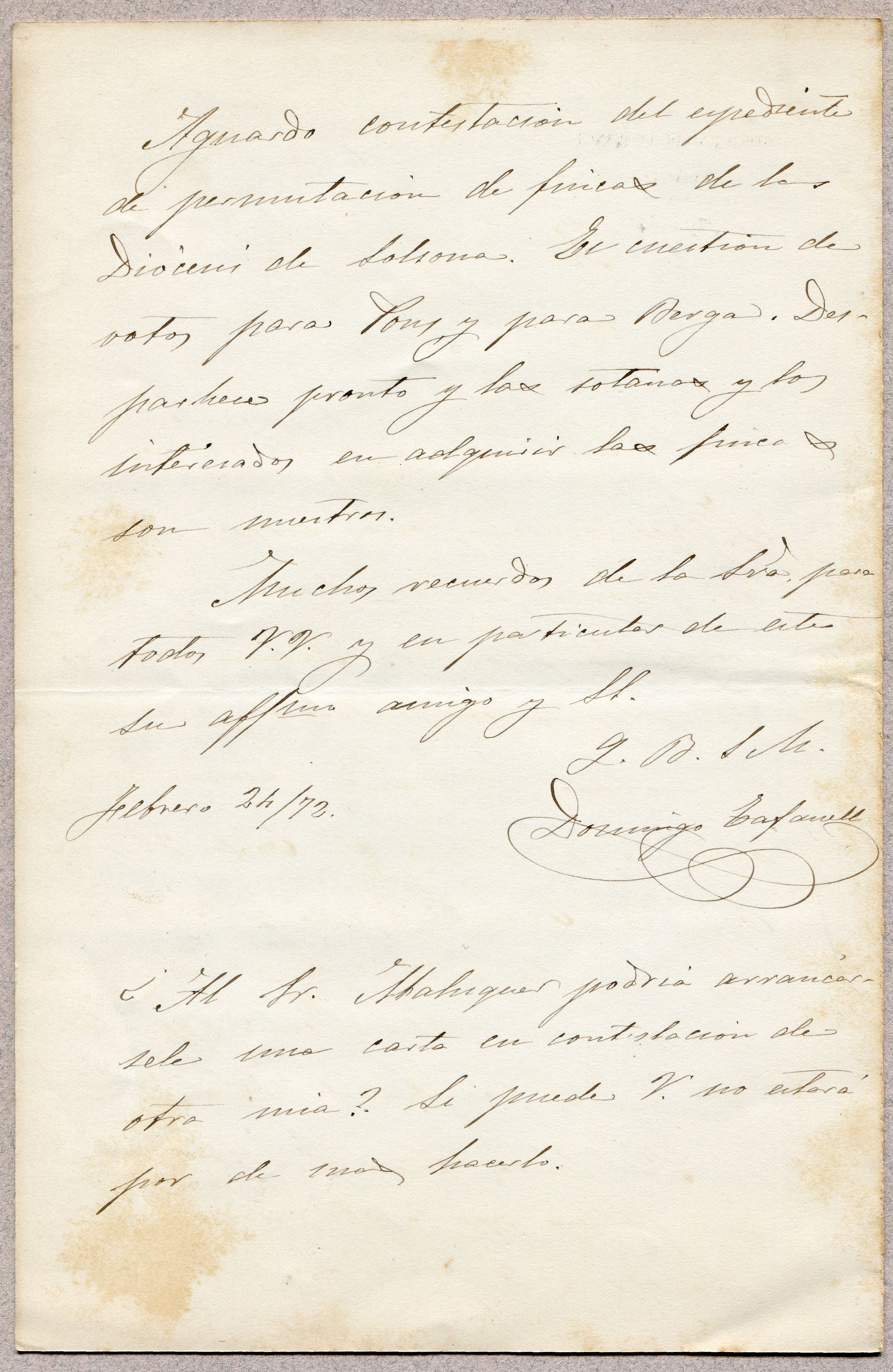 Summary: A més de les qüestions estrictes del districte de Balaguer, es refereix a la necessitat d'agilitzar l'expedient de permuta de les finques de la diòcesi de Solsona perquè beneficiarà la candidatura de Pons.Summary: A més de les qüestions estrictes del districte de Balaguer, es refereix a la necessitat d'agilitzar l'expedient de permuta de les finques de la diòcesi de Solsona perquè beneficiarà la candidatura de Pons.