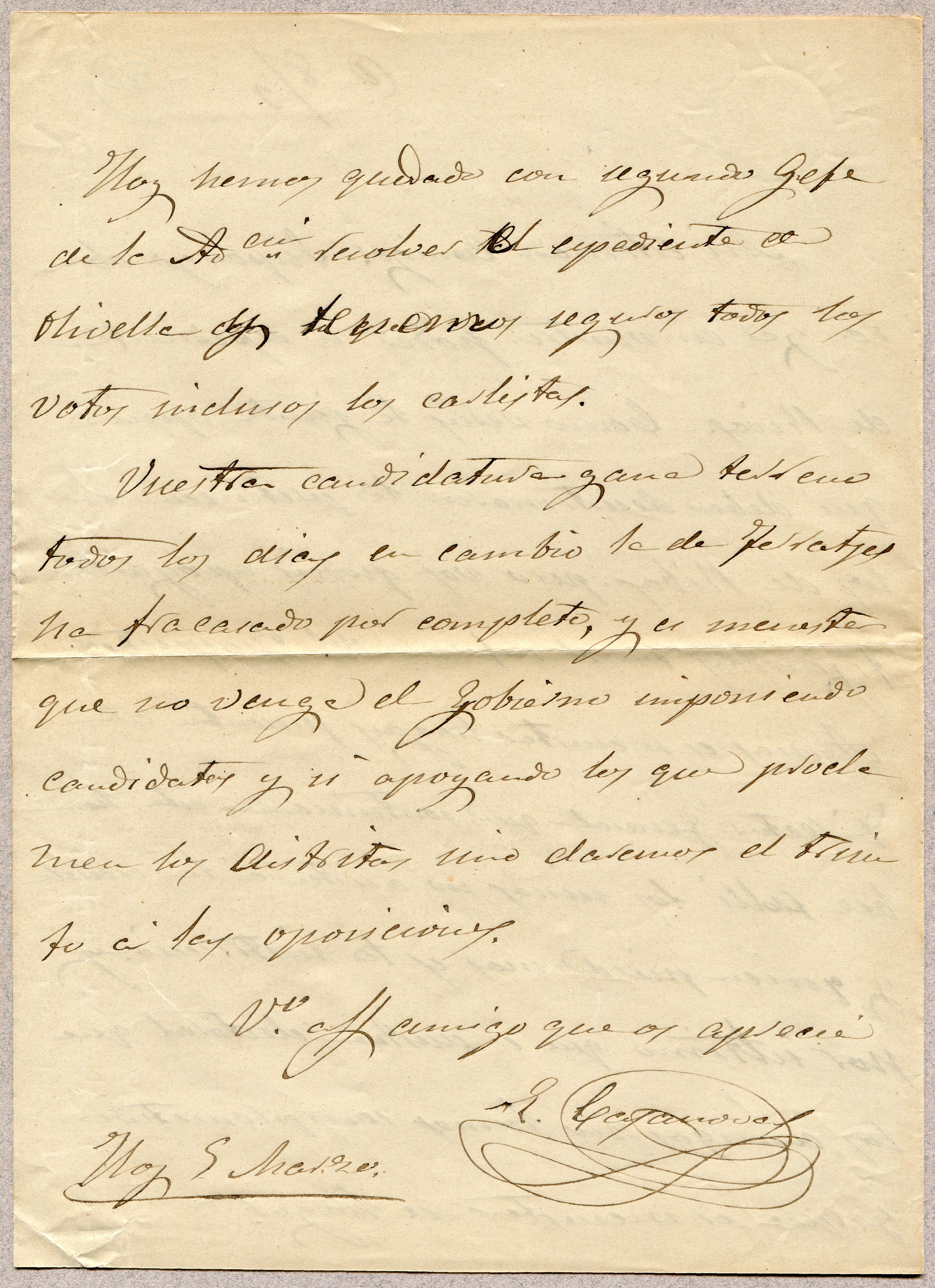 TextPublisher: Barcelona / 05/03/1872Addressee: Balaguer, Víctor, 1824-1901, destinatariSubject(s): Ferratges, Antonio | eleccions generals- candidaturesOnline resources: