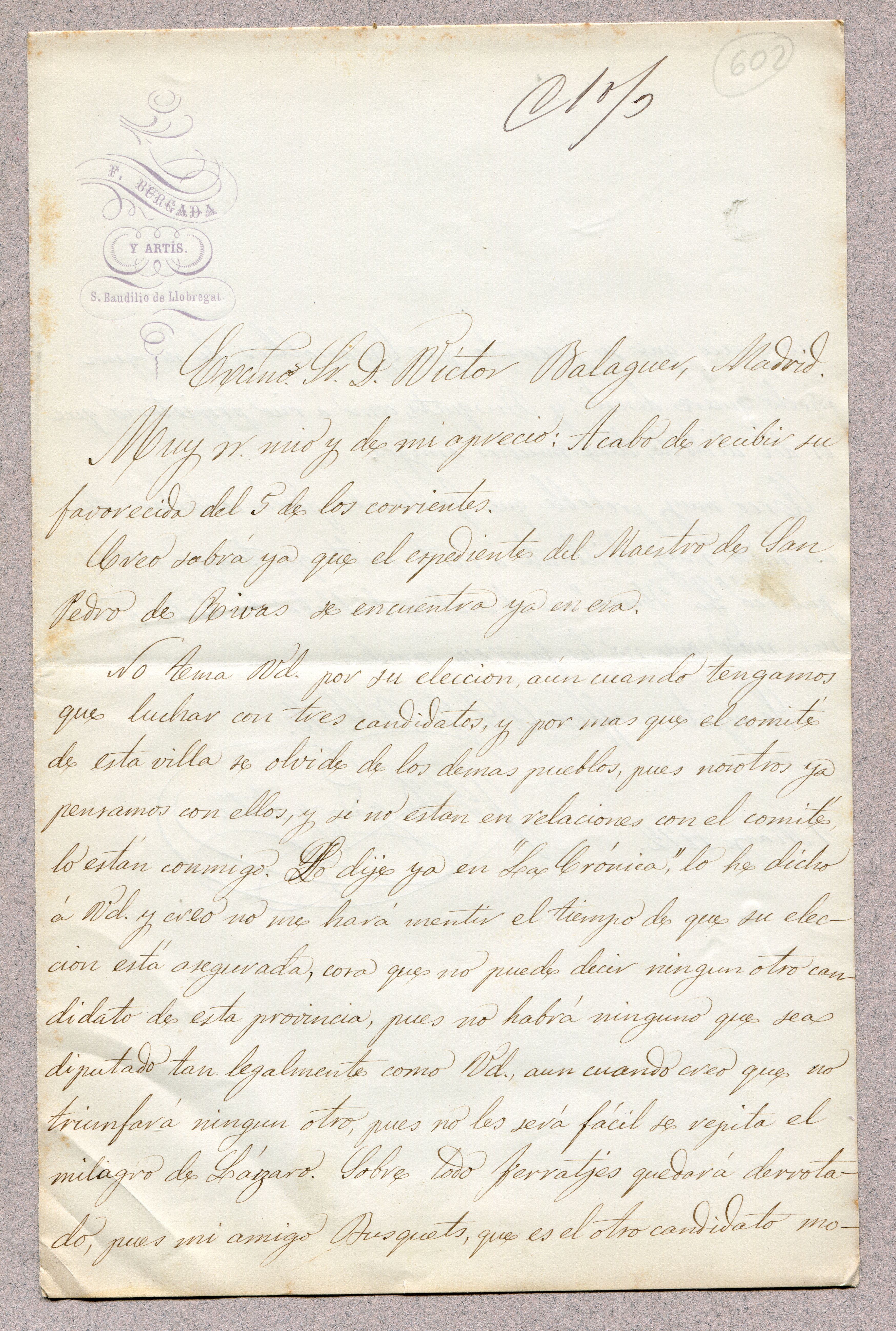 TextPublisher: Sant Boi de Llobregat / 07/03/1872Addressee: Balaguer, Víctor, 1824-1901, destinatariSubject(s): "Crónica, La" | "Iberia, La" | Busquets | Ferratges, Antonio | eleccions generals- candidatures (VB)Online resources: