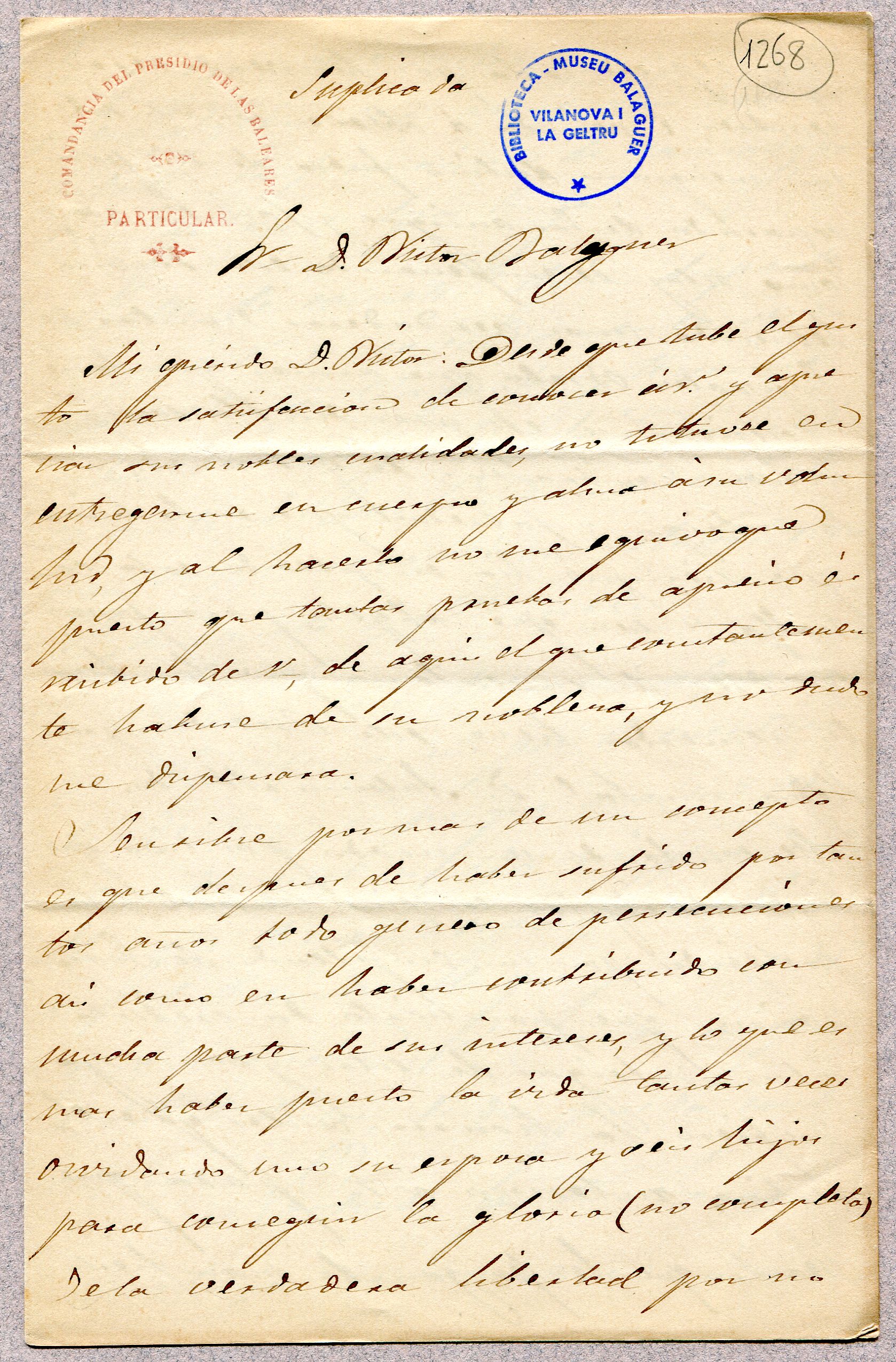 [Carta de l'epistolari de Víctor Balaguer]